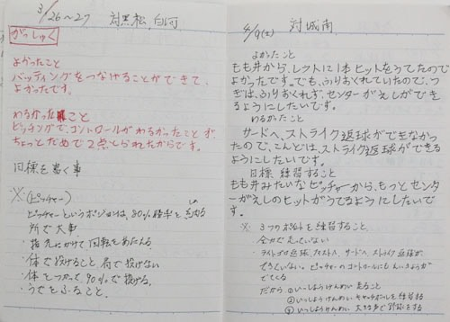 翔平選手がその日の練習での反省点や課題、感じたことをノートに書き、それに対して父・徹さんが赤ペンでアドバイスを返信したり、良かったプレーを具体的に褒めたりするという形式でした。